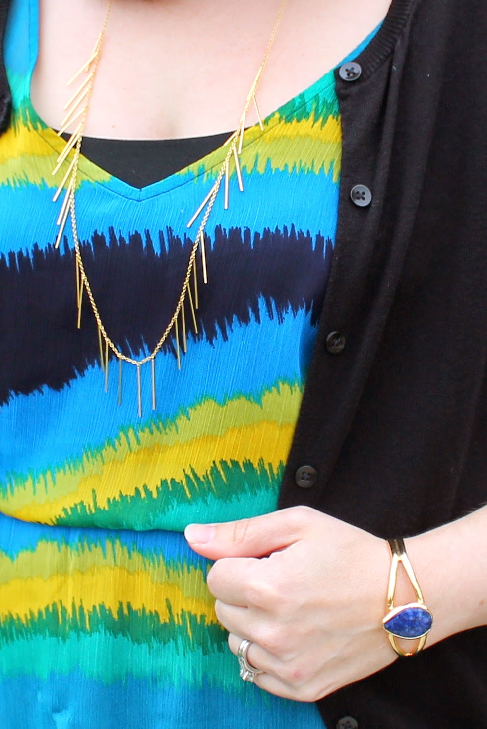 10. Lovely, simple pieces... and your colorful dress looks great. Perfect accessorizing!!